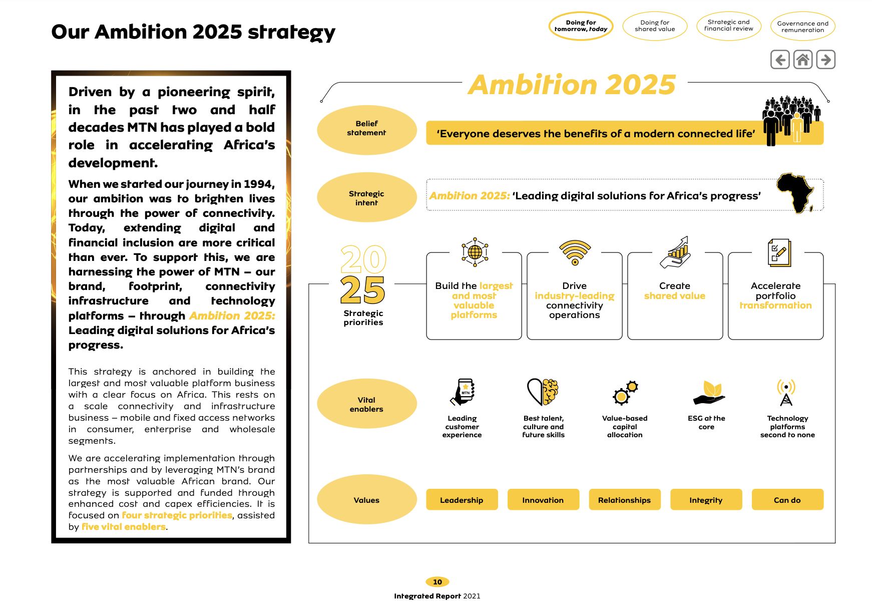 战略目标有助于投资者和其他利益相关者了解公司的发展方向、计划如何实现目标以及实现的时间。这也有助于员工了解他们在实现公司战略中的角色。目标和关键绩效指标对问责制非常重要,可让投资者和其他利益相关者对照战略目标评估战略实施和进展情况。